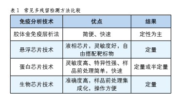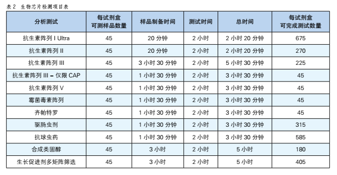 此次講堂還邀請到預(yù)防醫(yī)學(xué)專業(yè)、醫(yī)學(xué)碩士、英國朗道實(shí)驗(yàn)診斷有限公司技術(shù)支持專員連璐璐老師,連璐璐在講堂上主講了多獸藥殘留快速檢測技術(shù)的應(yīng)用,列舉現(xiàn)有的獸藥殘留快速檢測方法及其優(yōu)劣、單獸藥殘留檢測和多獸藥殘留檢測的比較以及多獸藥殘留檢測的重要生物芯片技術(shù)在多獸藥殘留中的應(yīng)用,還為我們列舉出了常見的多殘留檢測方法比較和生物芯片檢測項(xiàng)目表。(如表1、表2)